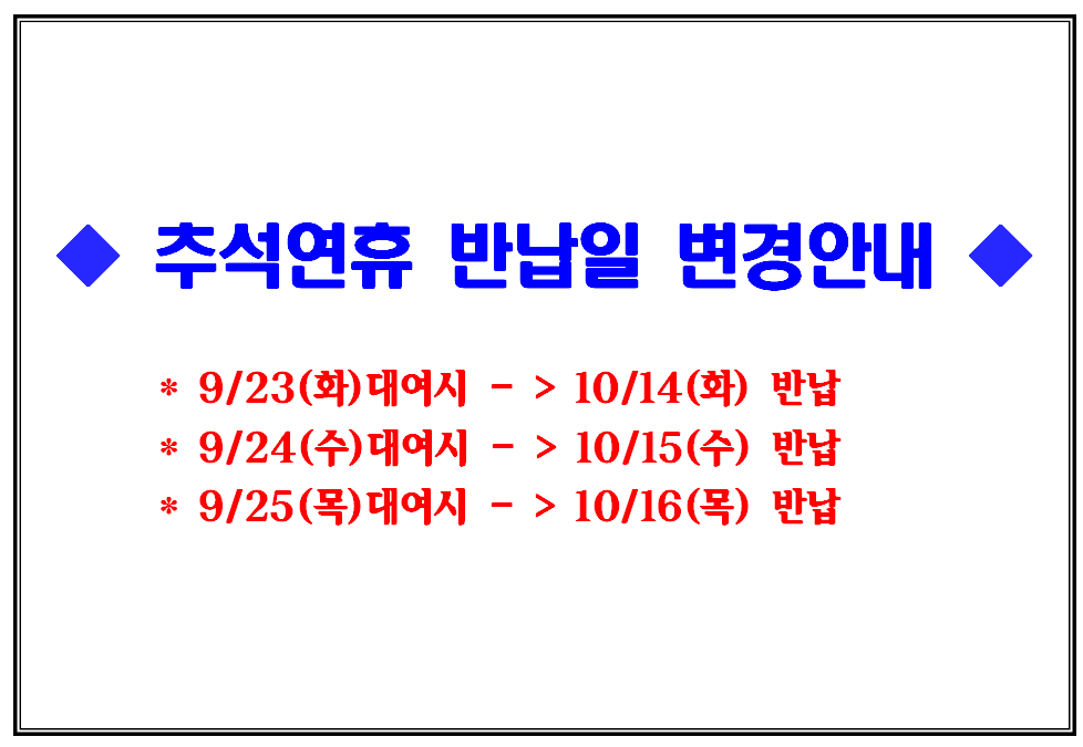 9월 20일(토) 부모쉼의날 행사로 인한 휴관안내(프로그램은 정상운영합니..